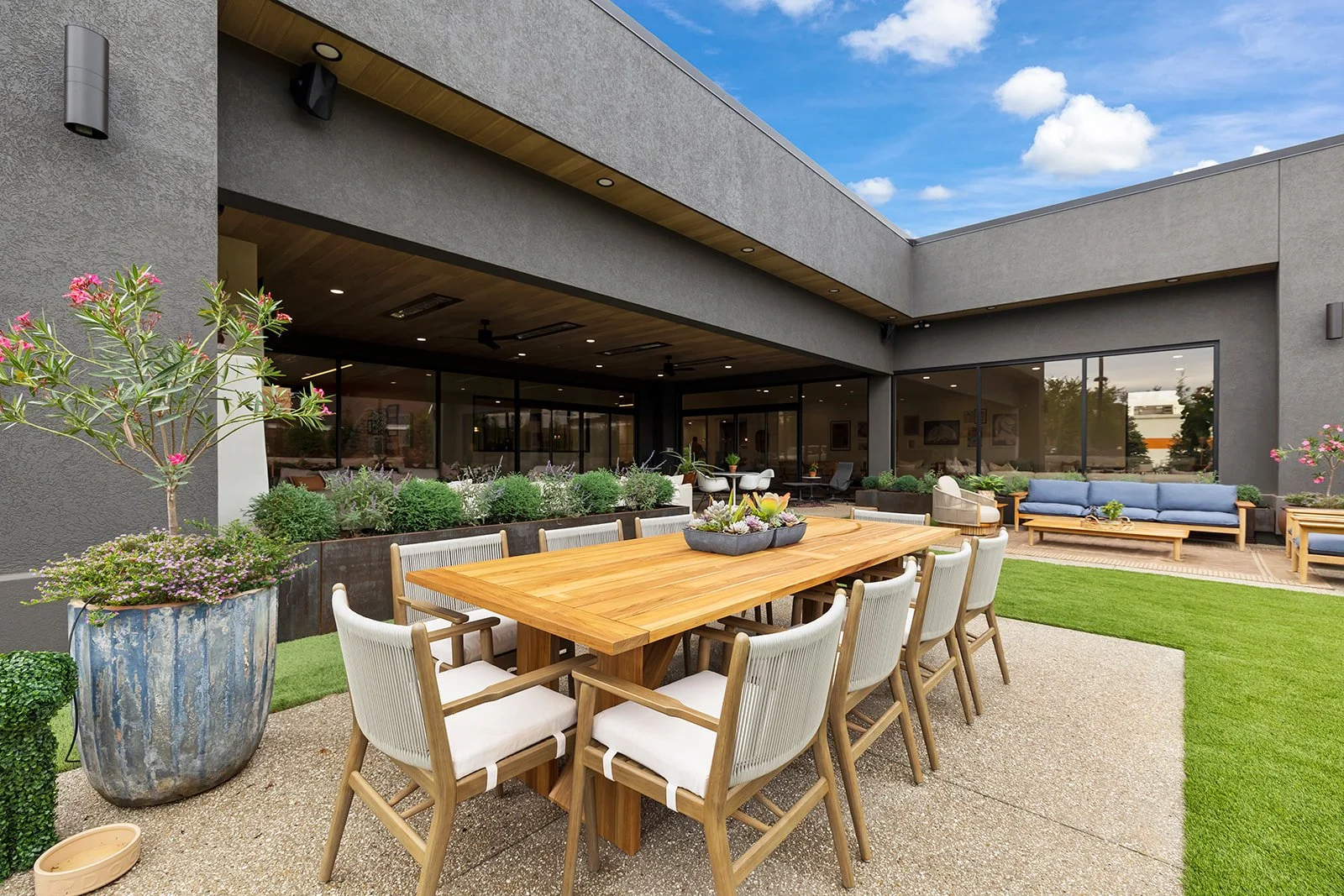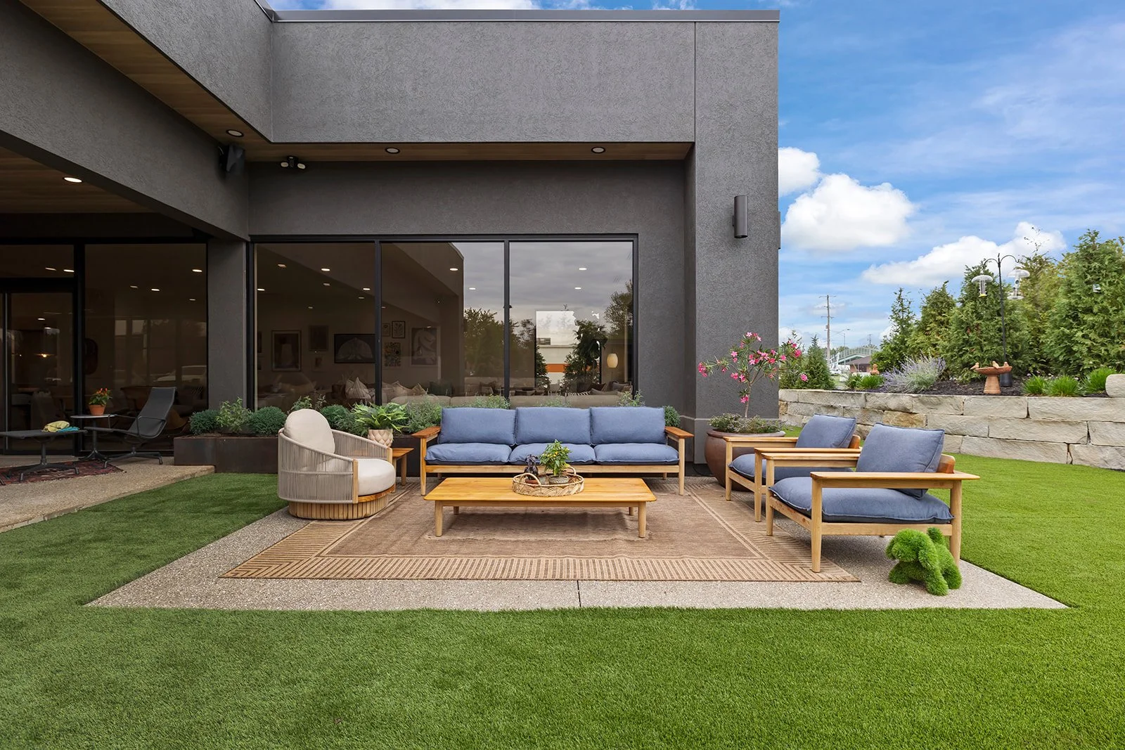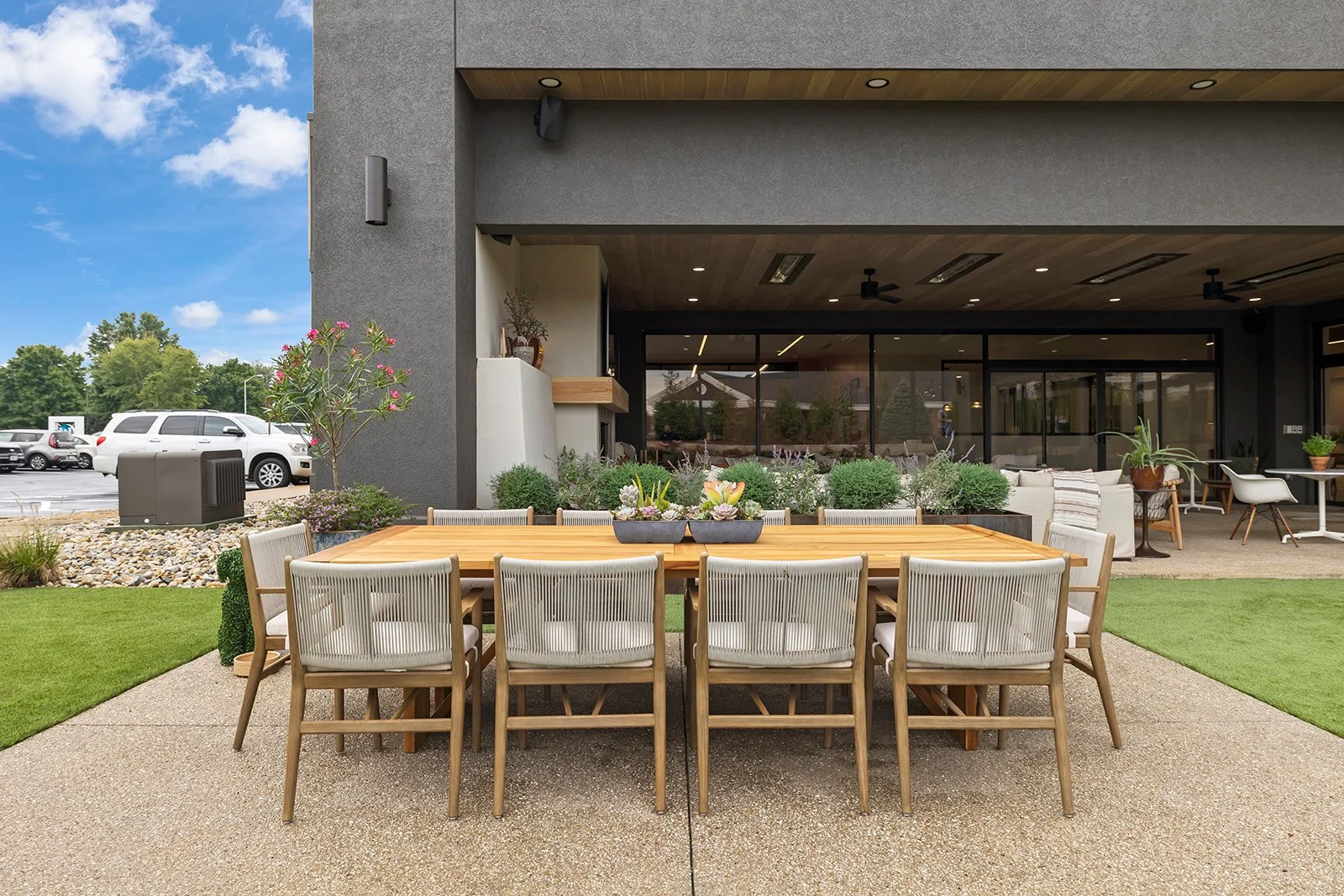 The expanded facility also allows us to showcase select outdoor furniture lines in a dedicated outdoor showroom space. This area includes a covered patio, greenspace, outdoor bar, firepit, and fireplace, giving clients the opportunity to experience outdoor settings firsthand. The outdoor environment further reflects our commitment to helping clients envision how furniture can support work, connection, and comfort in every setting.