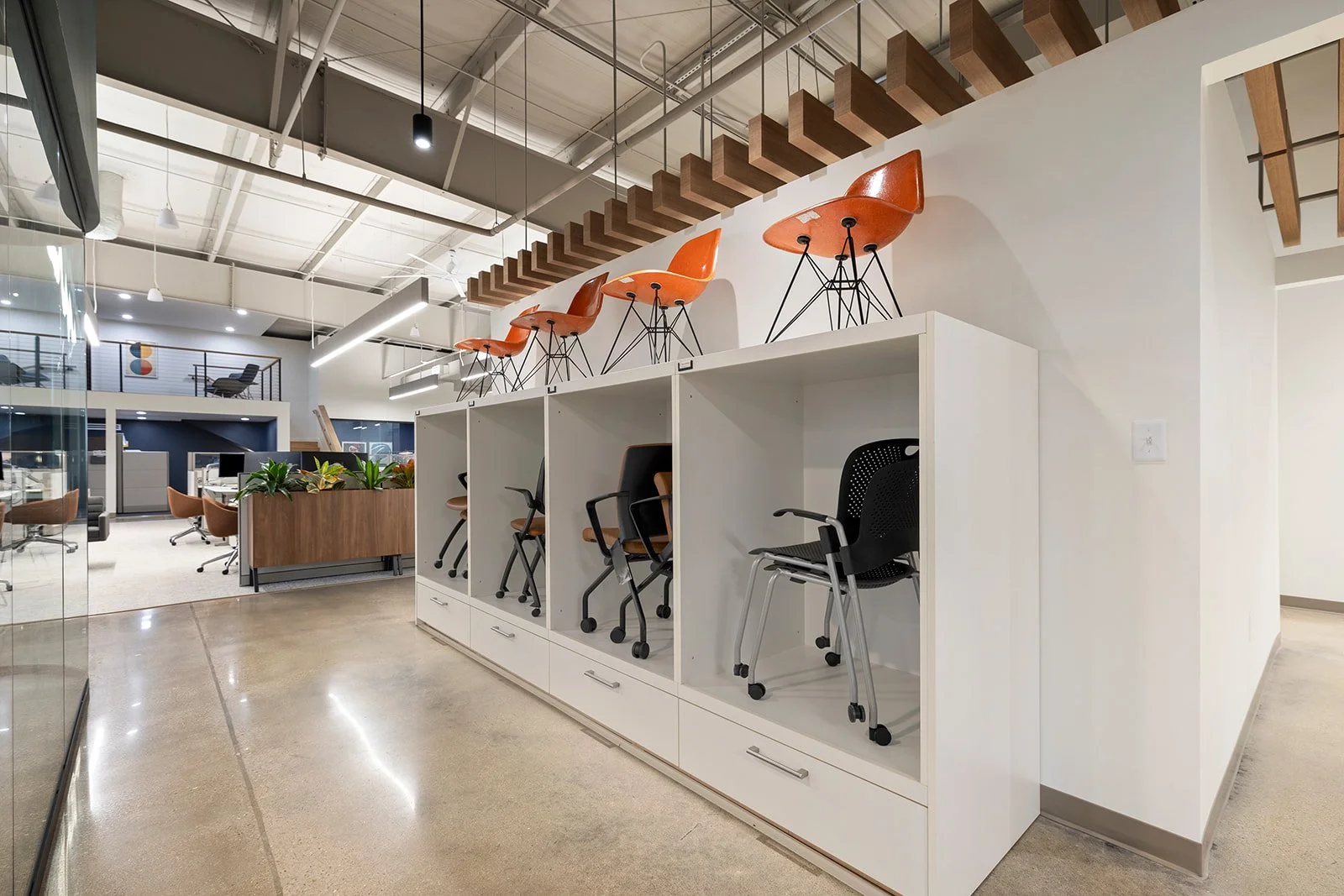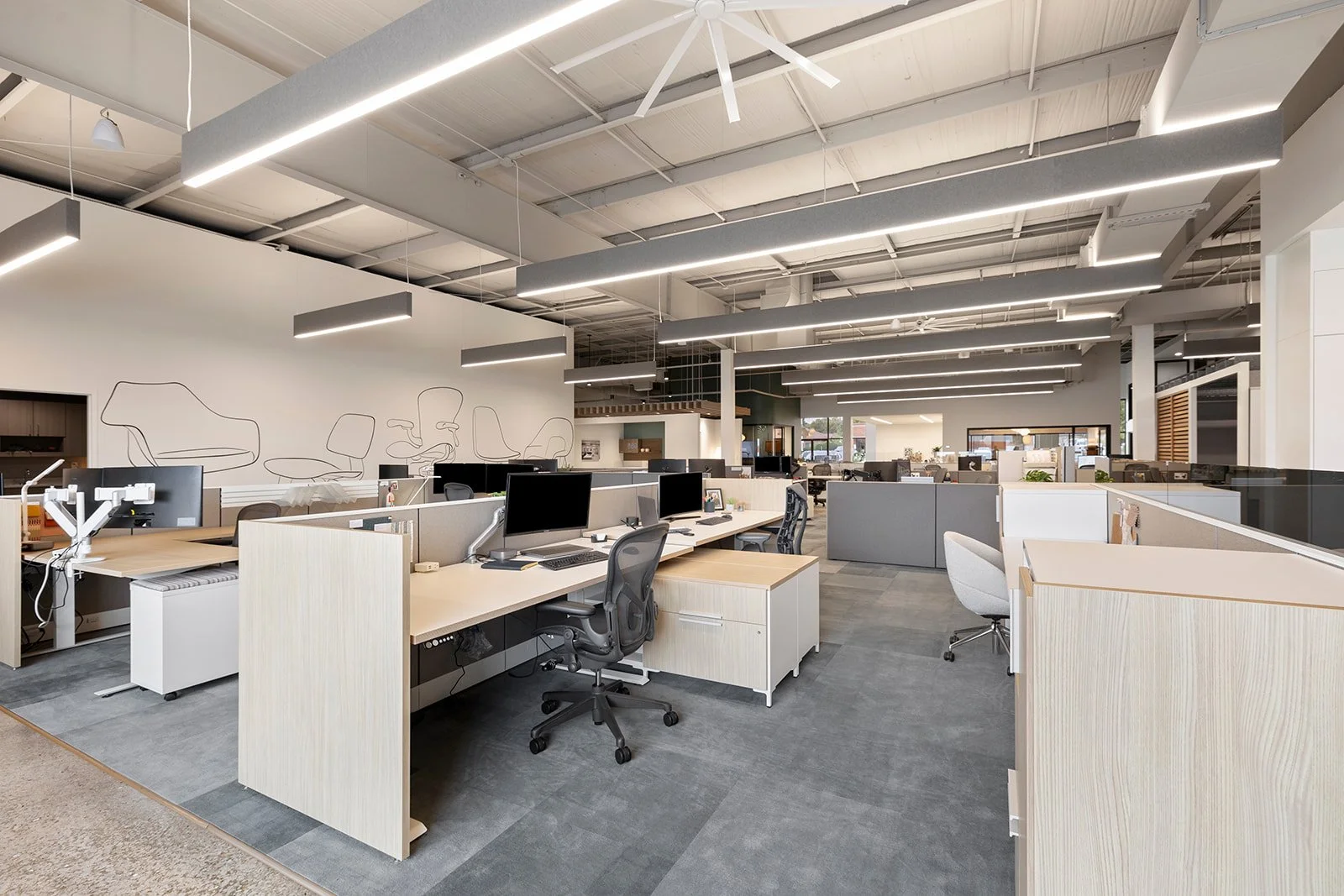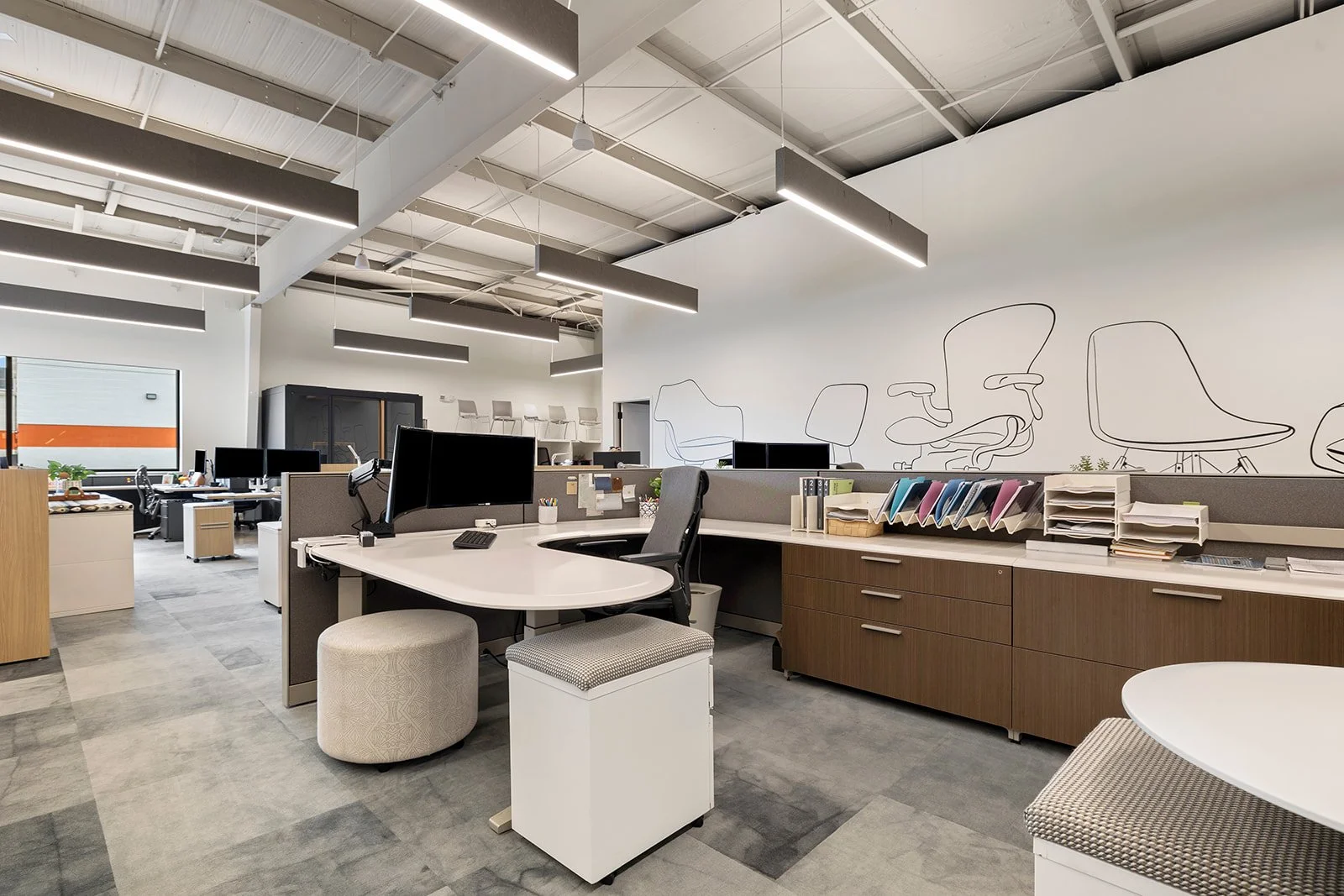 Our new facility is more than a showroom. It is a place where work truly comes to life. Designed as a hands-on, fully functional environment, the space features a wide range of workstations, private offices, collaboration zones, and gathering areas meant to inspire our clients and spark new ideas. Every setting showcases the same furniture and solutions our team uses every day. By working in what we sell, our team develops deeper product knowledge and real-world insight, allowing us to deliver smarter, more thoughtful solutions for our clients.