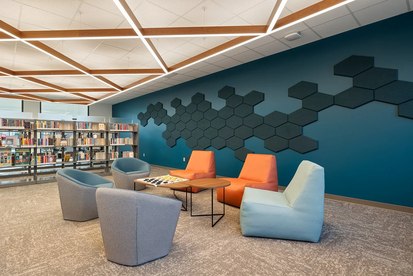 Grooms was thrilled to contribute to the overall experience of this significantly expanded community resource. The areas we completed feature flexible seating, study and lounge options, kid‑friendly elements, and teen‑focused spaces that reflect modern library use and support the activities of the growing Republic community. Our work complements the library’s broader upgrades, which include expanded youth services, a Maker Space featuring 3-D printing, a 150‑seat community room, an outdoor space, and other new amenities throughout the 22,000‑square‑foot facility.